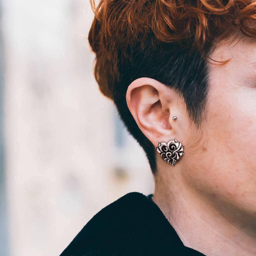 ONE PAIR of 316L Antique Silver Plated Devil Heart