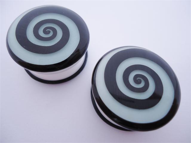 ONE PAIR of acrylic Spiral plugs that glow in the dark.